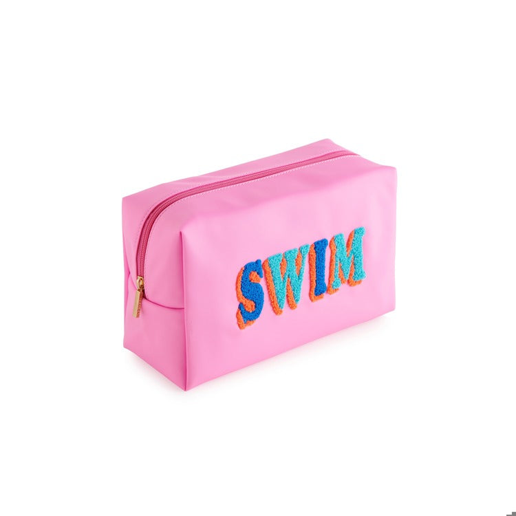 Make a splash with the Shiraleah Swim Large Zip Pouch, a roomy, vibrant accessory embroidered with “Swim” and finished with a sturdy top zipper—perfect for beach or pool days. Its fun and spacious interior makes it easy to organize swim bag essentials like sunscreen, goggles, and snacks with playful flair. Lightweight yet durable, it adds joyful style to sunny getaways.