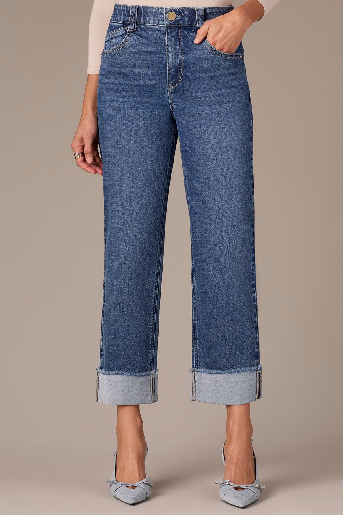 Refresh your denim style with the 27" (30" uncuffed)/16" High Rise Boyfriend jeans from Wit and Wisdom. Featuring a clean finish with fray cuff detail, these women’s jeans balance relaxed comfort with a modern edge. The flattering high-rise fit and versatile wash make them perfect for effortless weekend wear or casually polished everyday outfits.