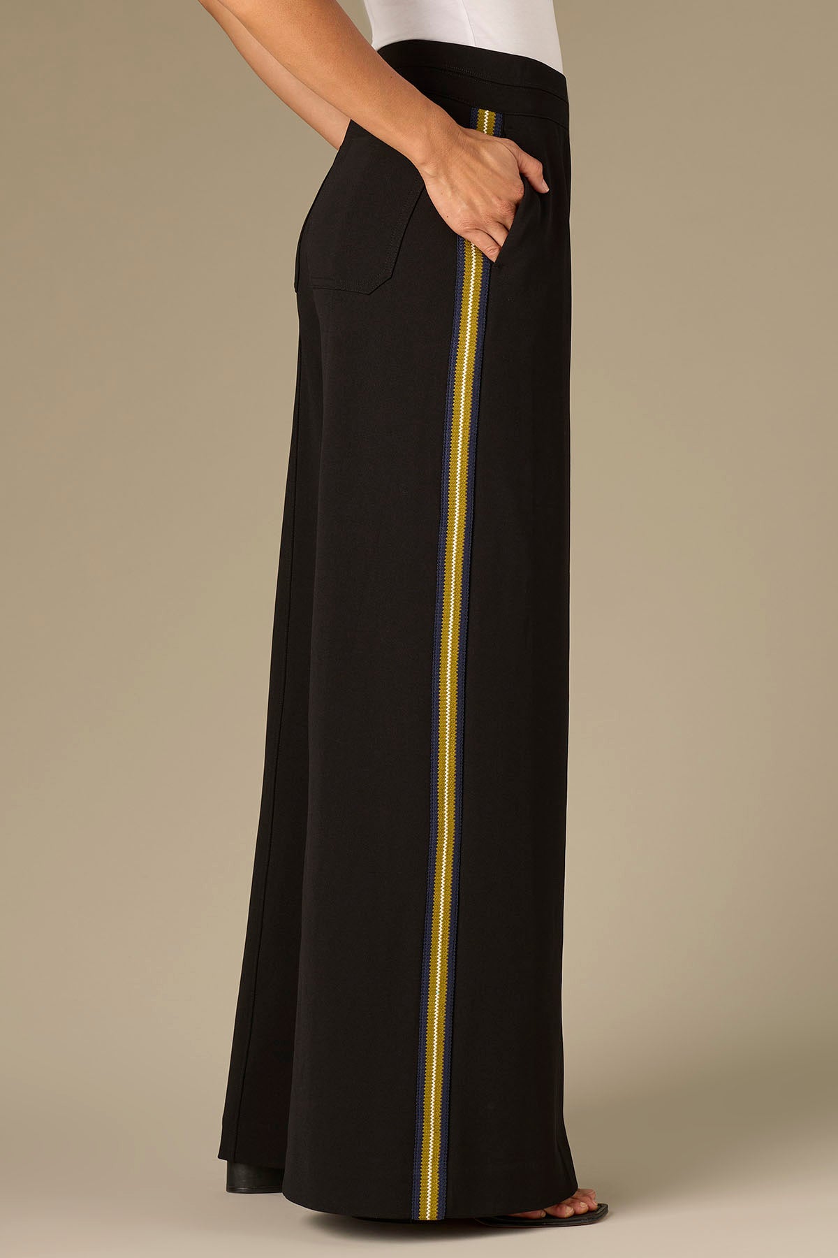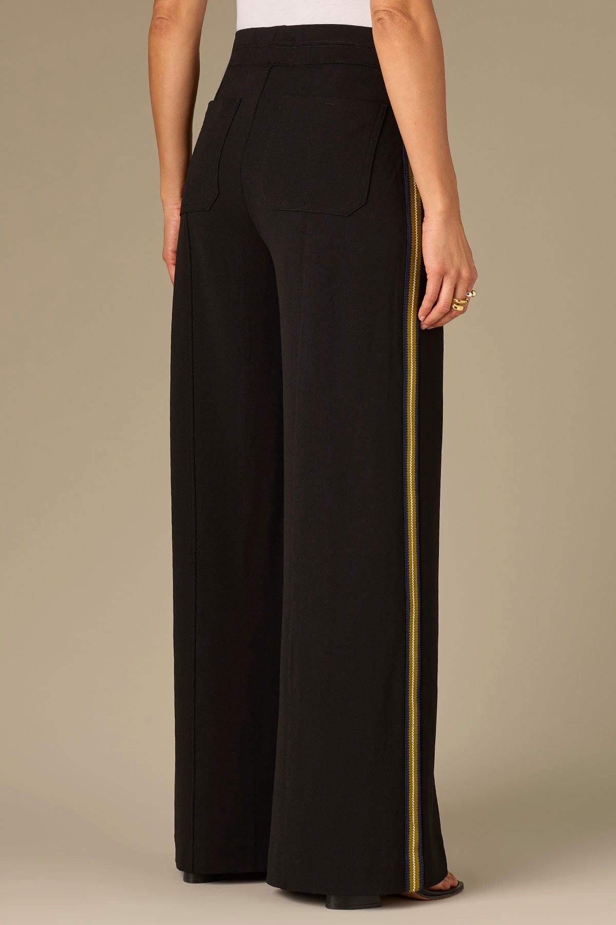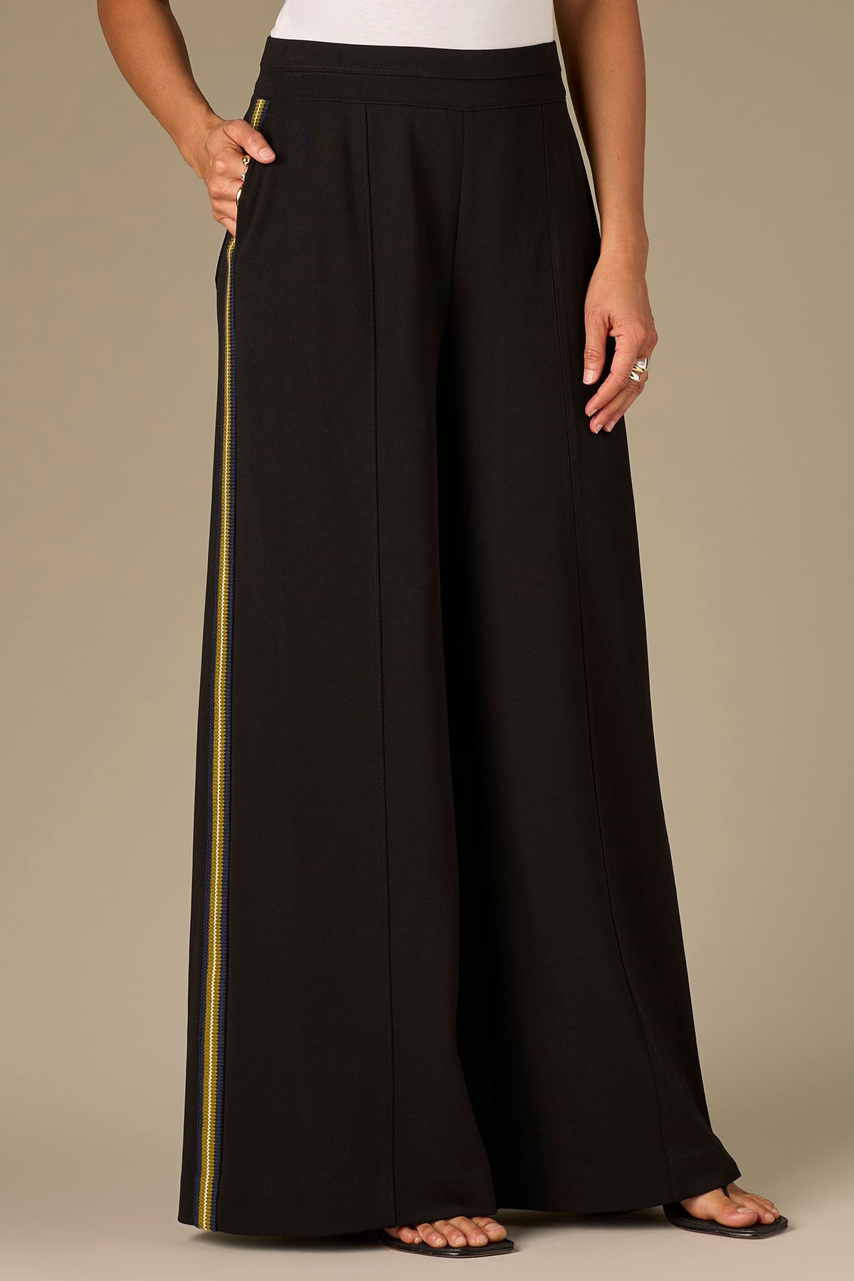 31/30” Skyrise Pintuck Palazzo Glider W/ Stripe Trim