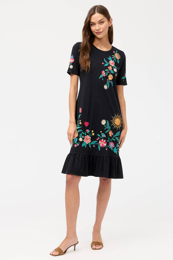 Feminine and effortlessly chic, the Johnny Was Ruffle Hem Knit Midi Dress – Ziviana flows gracefully with a soft knit fabric and playful ruffle detailing that adds movement and charm. This women’s midi dress is perfect for casual outings or special occasions, offering comfortable stretch, versatile styling, and timeless elegance, allowing you to showcase relaxed sophistication and signature Johnny Was artistry in every step and silhouette.