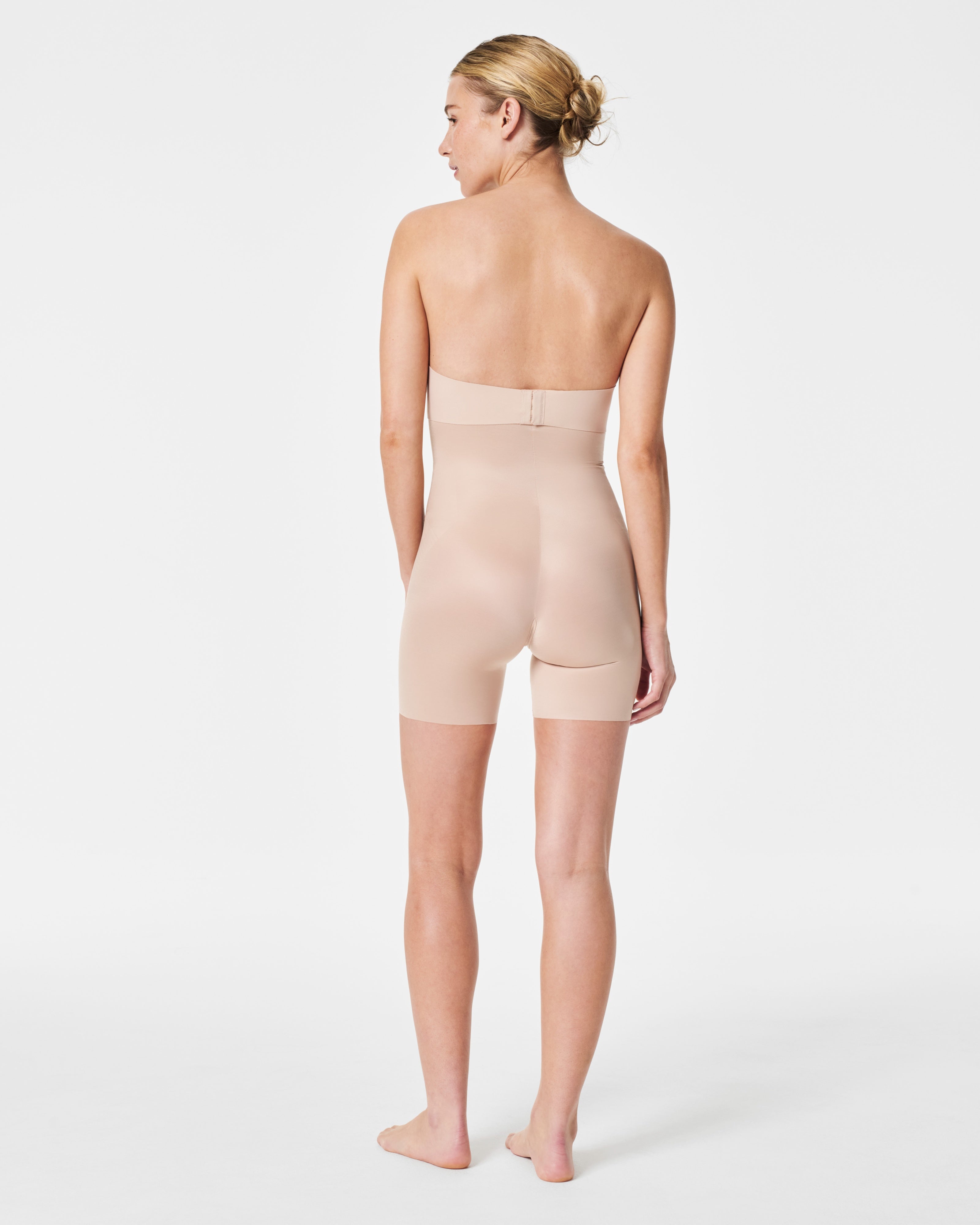 Experience everyday confidence with the Spanx Thinstincts 2.0 High-Waisted Mid-Thigh Short, a lightweight shapewear solution designed for all-day comfort. Crafted with breathable, moisture-wicking fabric, it offers targeted tummy and hip shaping through advanced Printed Power technology. The high-waisted design ensures a smooth silhouette under any outfit, while the mid-thigh length prevents chafing. Ideal for layering beneath dresses or skirts, this piece provides a firm yet comfortable fit.