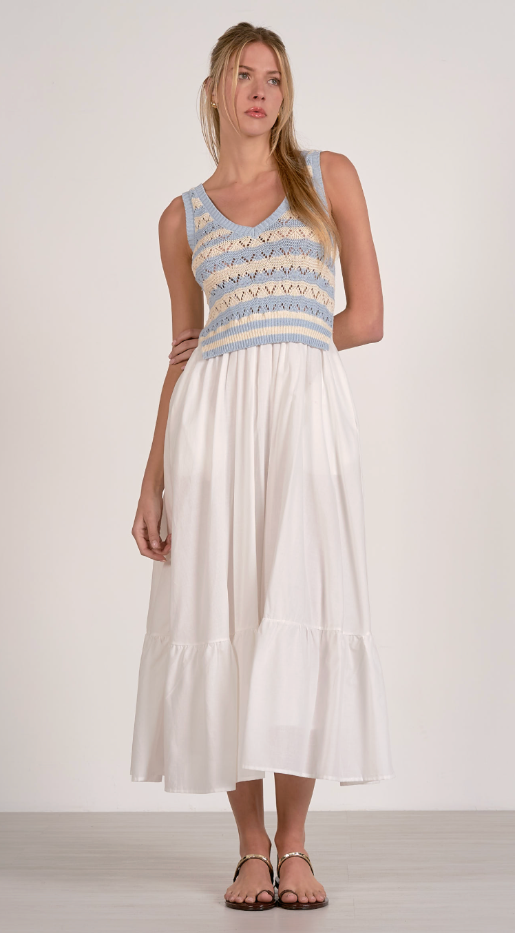 Woven & Knit Mix Tiered Midi Dress