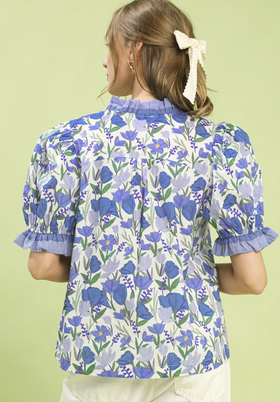 Floral Ruffle Trim Puff Sleeve Blouse