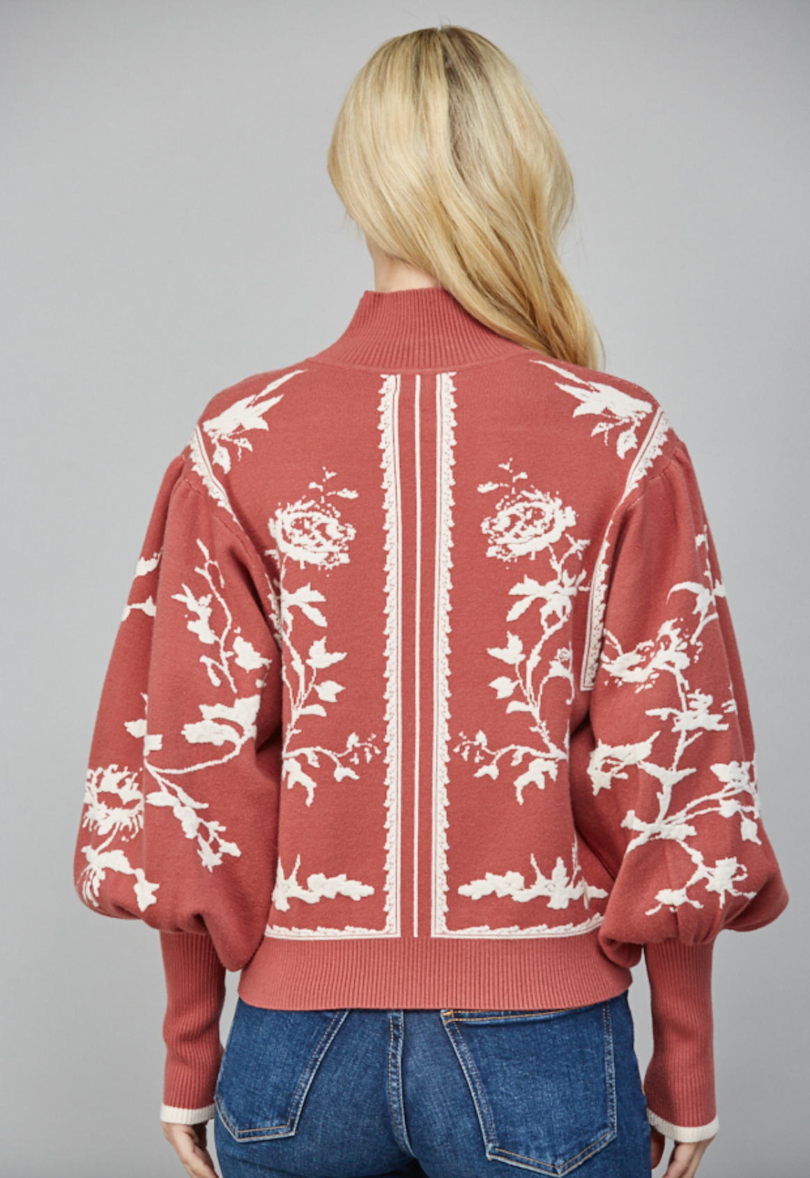 DRAMATIC BALLON SLEEVE MOCK NECK SWEATER