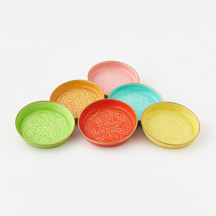Colorful Embossed Bowl Lg Enameled Metal