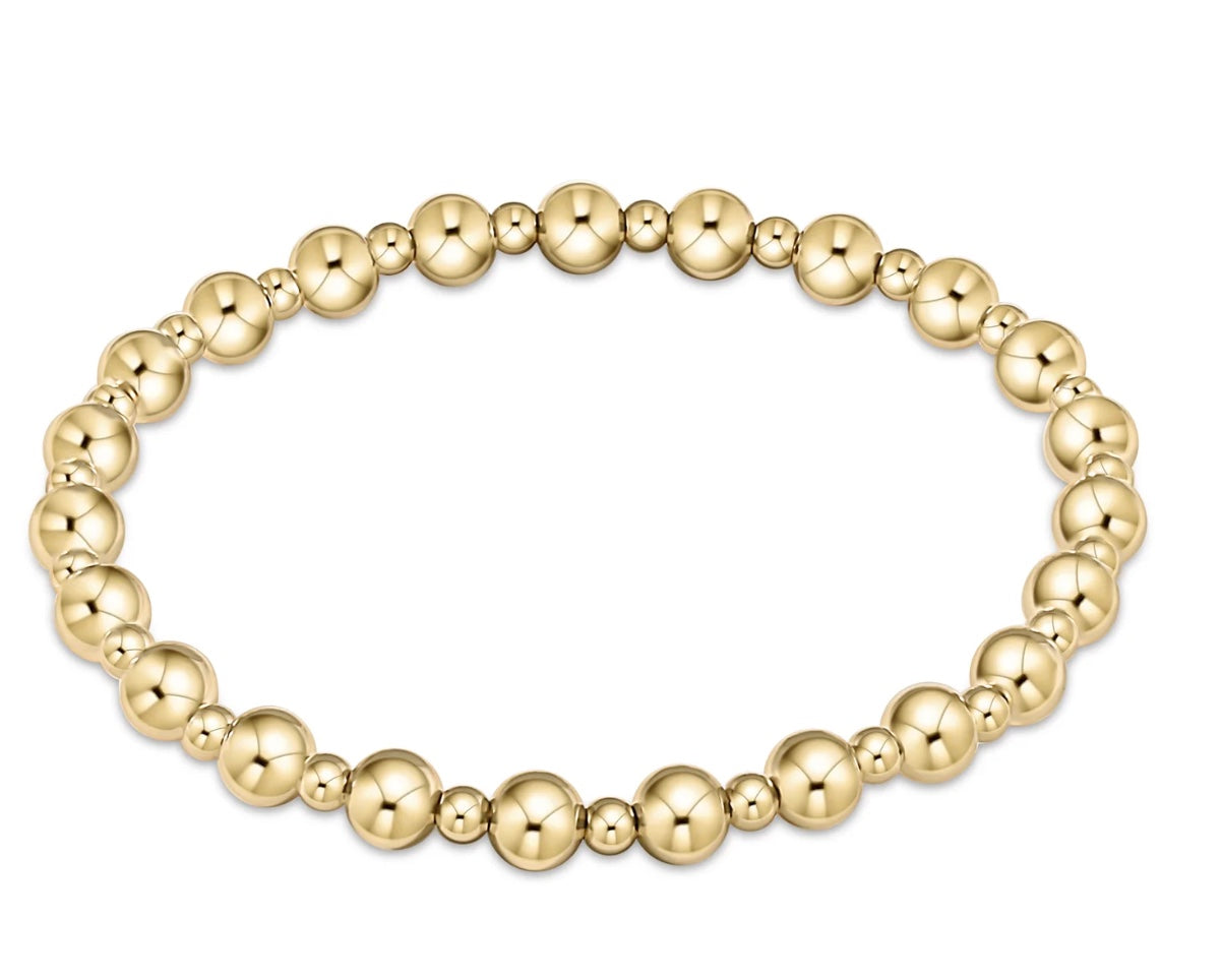 Introducing our new pattern, grateful. This bracelet is a classic gold beaded bracelet with alternating bead sizes.