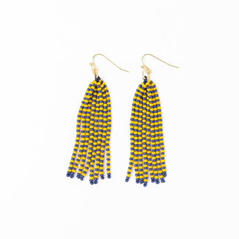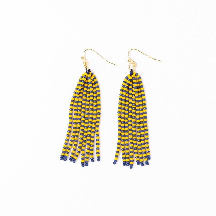 Cheer with vibrant movement and playful fringe in the Ink + Alloy Gameday tassel alternating seed bead earrings, where spirited glass tassels dance with every turn. Perfect as game day tassel earrings accessory to add bold color and lively energy to spirited outfits. Lightweight and artisan‑made with hypoallergenic brass fish hooks, they elevate casual looks with joyful, handcrafted charm.