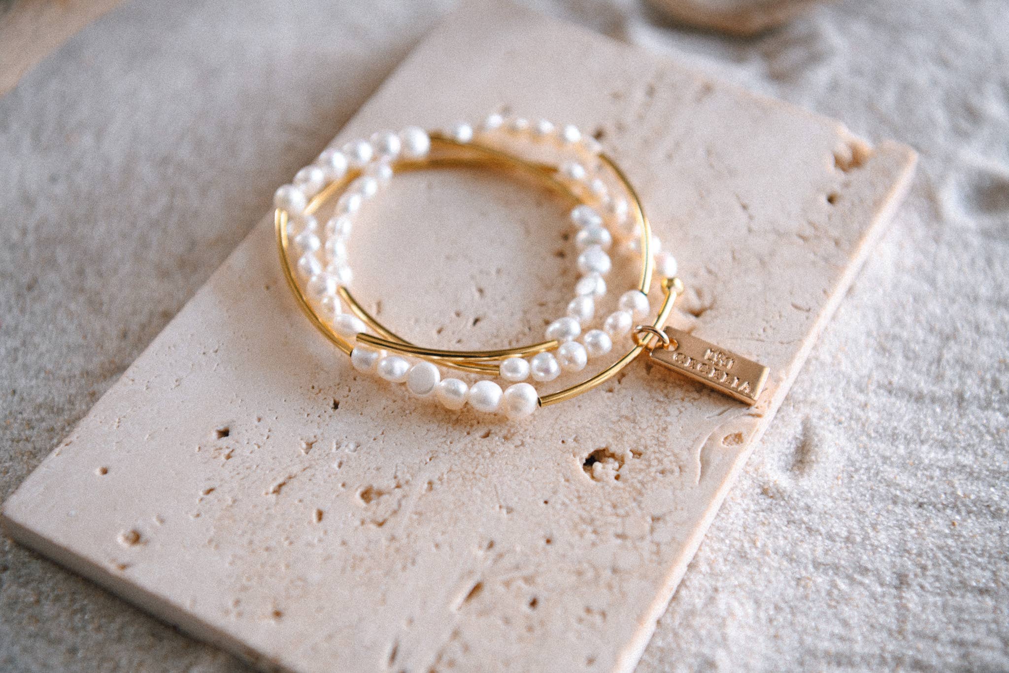 Hepburn Pearl or Gold Beaded Triple Wrap Bracelets