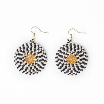 Blooming with graphic beadwork and boho elegance, the Ink + Alloy Ilene round beaded dangle earrings bring bold monochrome flair to every outfit. Perfect as round beaded dangle earrings fashion accessory, their handcrafted glass bead pattern offers effortless style from tees to dresses. Lightweight and artisan‑made in India, they swing with subtle movement and timeless charm for everyday wear.