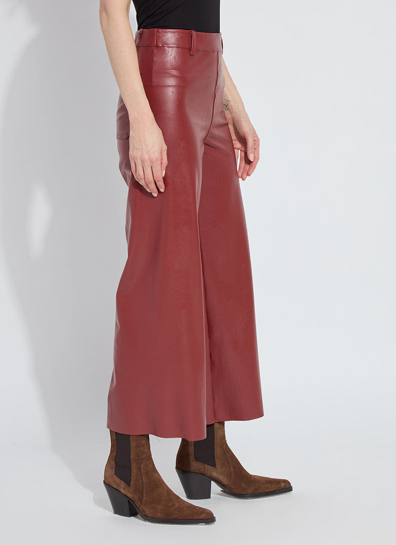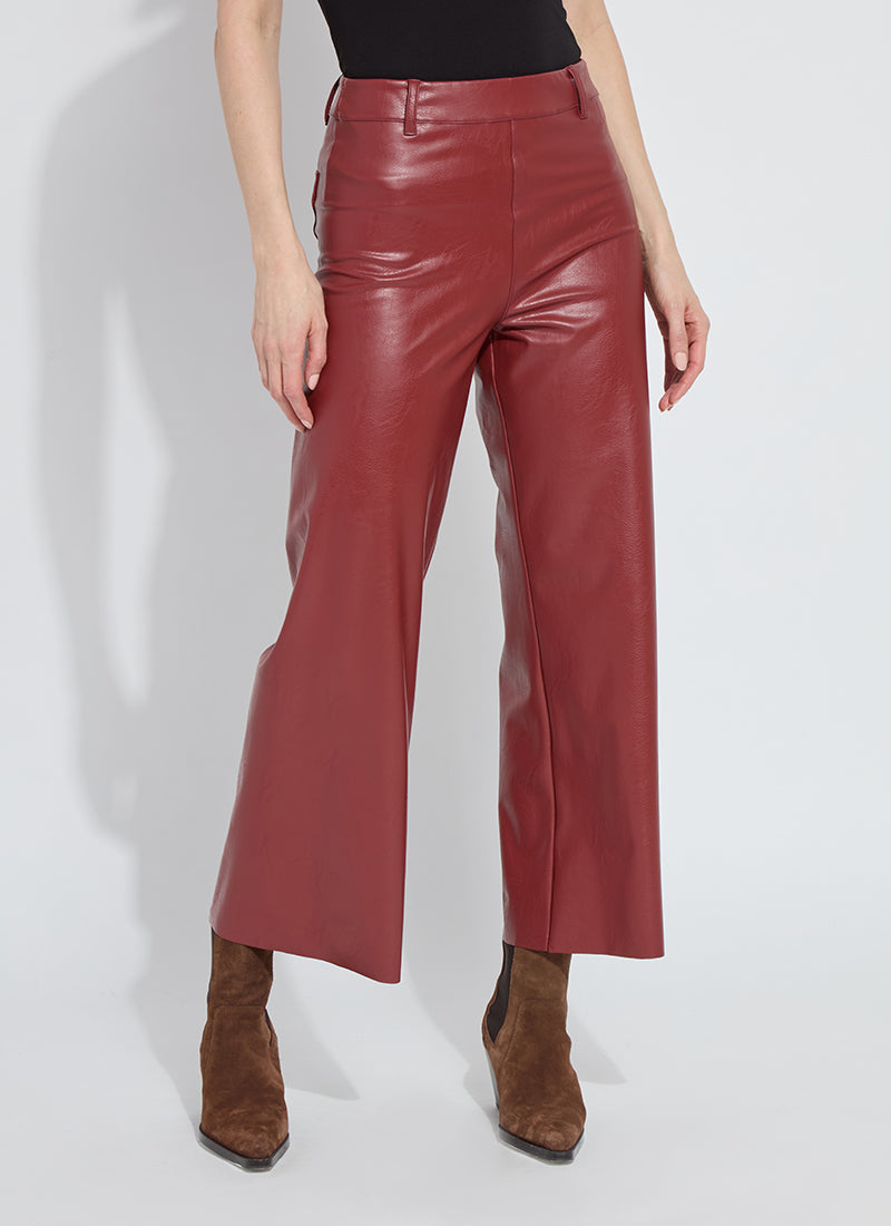 The Lysse Azara Wide Leg Vegan Leather Pant combines edgy style with cruelty-free fashion. Featuring a high-rise waist and flowing wide-leg silhouette, these pants offer a flattering fit with a modern edge. Crafted from soft, vegan leather, they include a hidden zipper closure and sleek pockets for functionality, making them a chic vegan leather pant perfect for bold, sustainable looks.