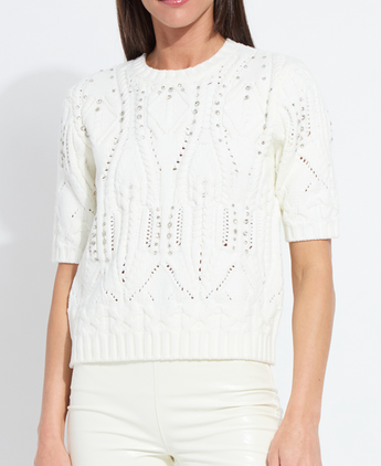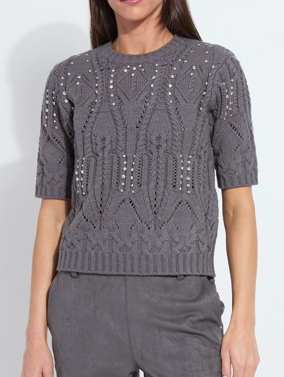 Hadley cozy short slv embellished cable sweater