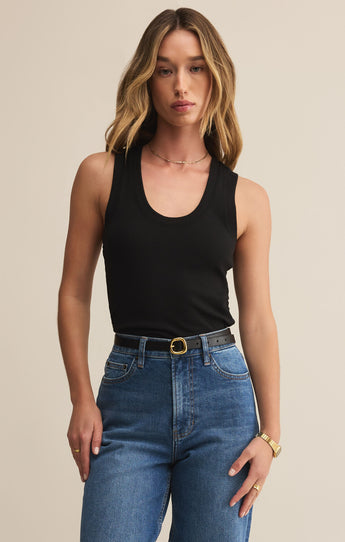 The Sirena Rib Tank is a sleek and stylish essential for your wardrobe. Made from soft, ribbed fabric, it offers a flattering fit that hugs your body just right. Perfect for layering or wearing solo, this tank is versatile enough for any occasion. Elevate your casual look with this ribbed tank top for effortless style!