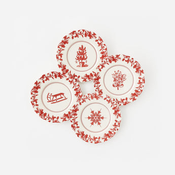 Infused with festive cheer and timeless flair, the One Hundred 80 Degrees Yuletide Scalloped Plate brings classic holiday motifs — mistletoe, sled, tree, snowflake (choose one)— to your table. Each scalloped?edge plate feels elegant and playful, adding a sprinkle of warmth. Perfect for Yuletide party tableware, they’re BPA free and dishwasher safe (not microwaveable), blending durability with Christmas charm.