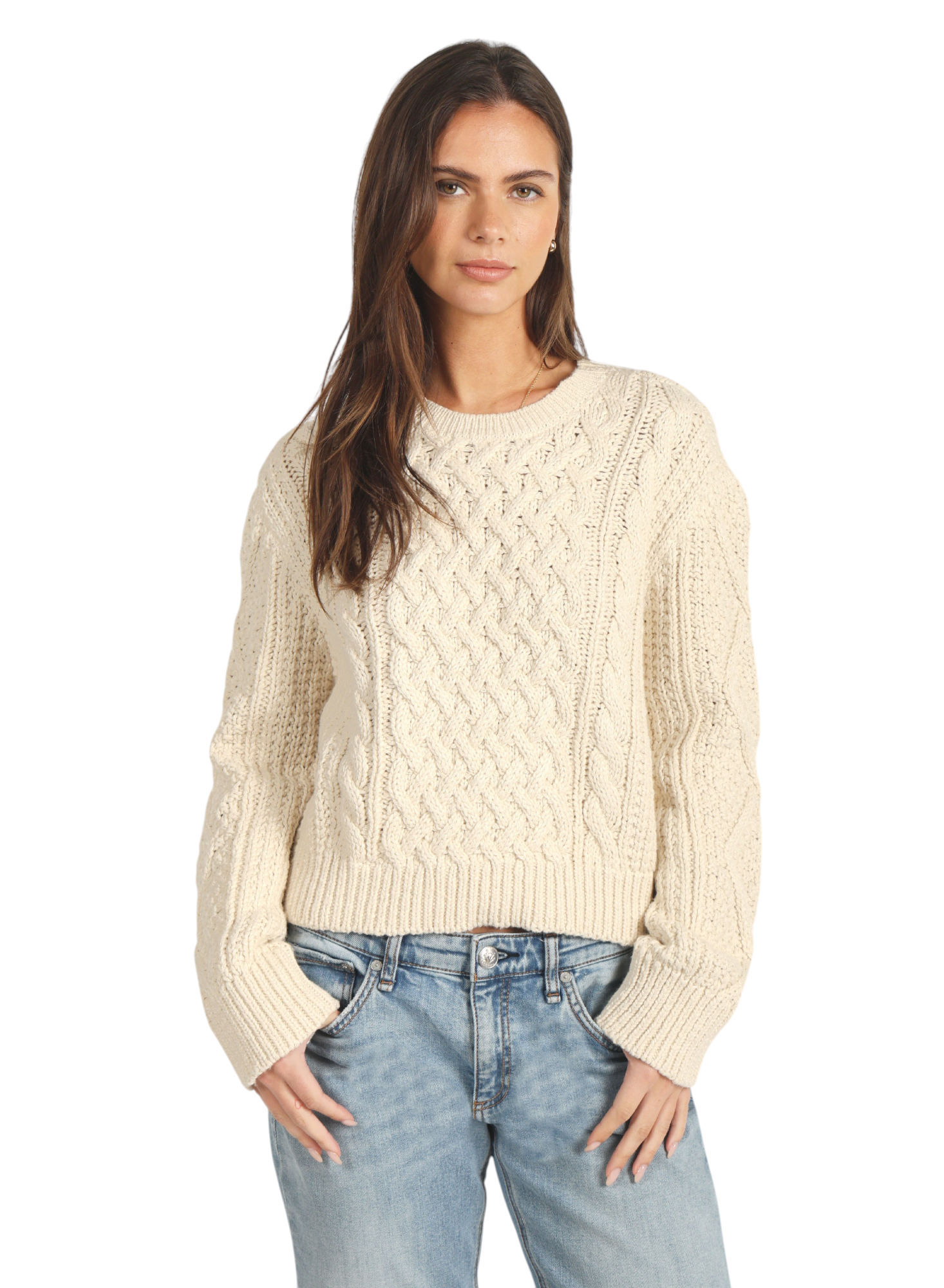 The Charlotte Cable Crew from True Grit & Dylan is a timeless classic with a cozy twist. This cable knit crew sweater features a soft, textured design with a relaxed fit for effortless layering. Perfect for cool days, it pairs beautifully with denim or leggings, offering warmth and style in one versatile piece.