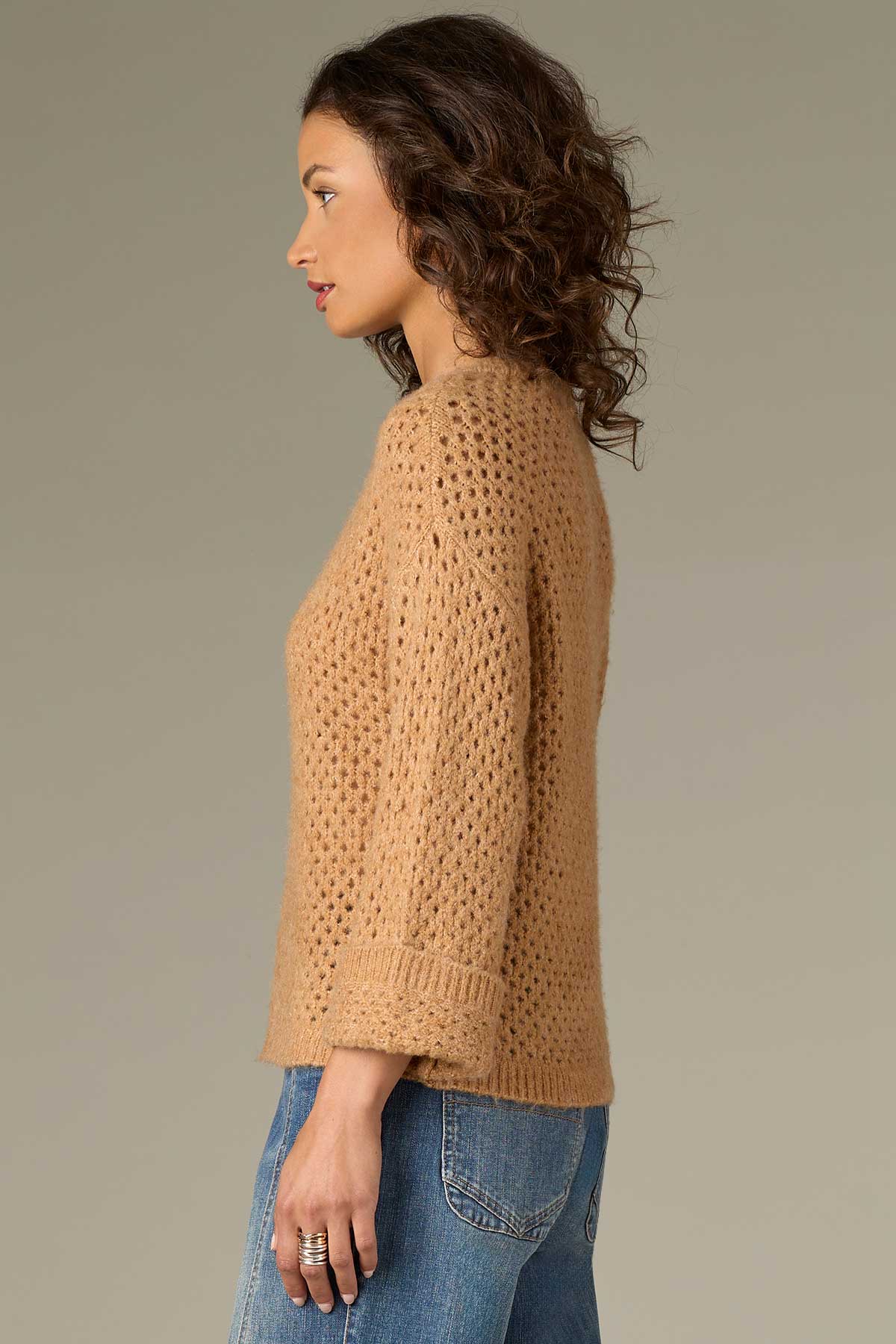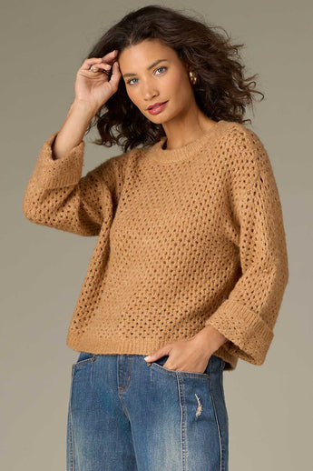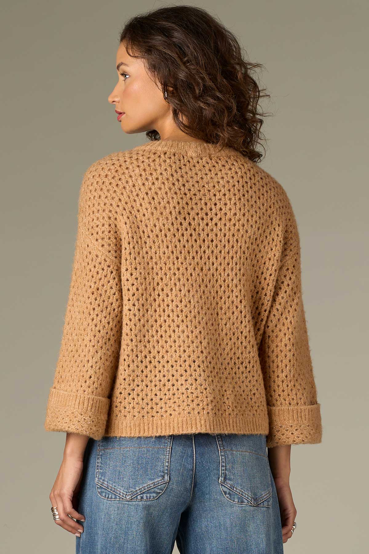 Long Cuffed Sleeve, Open Work Sweater