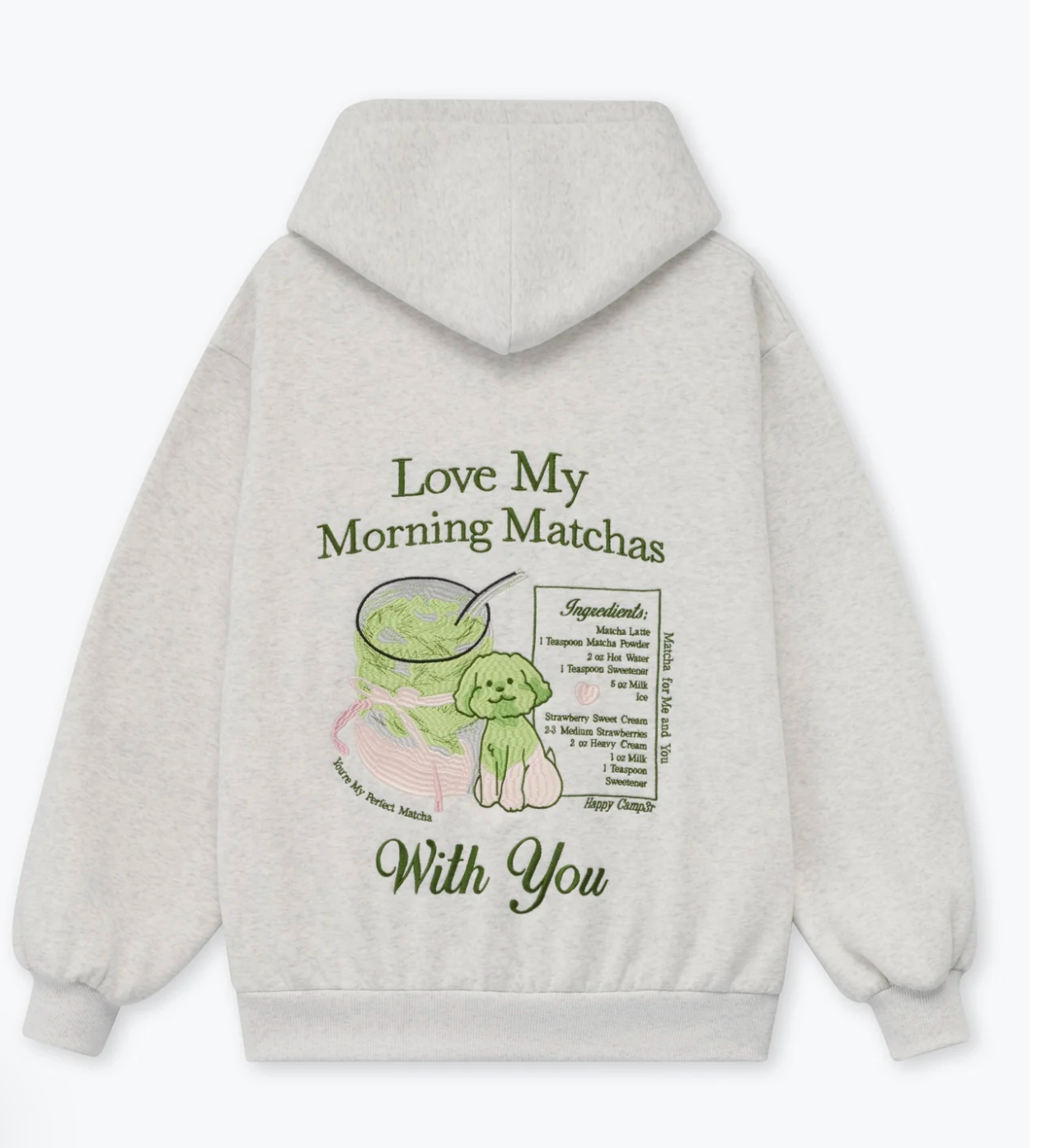 The Morning Matchas Hoodie feels like a cozy reminder to slow down and savor the sweet things. In heather gray with an adorable matcha-making friend printed on the back, it brings a little morning magic wherever you go. The recipe graphic adds the perfect playful touch for matcha lovers.