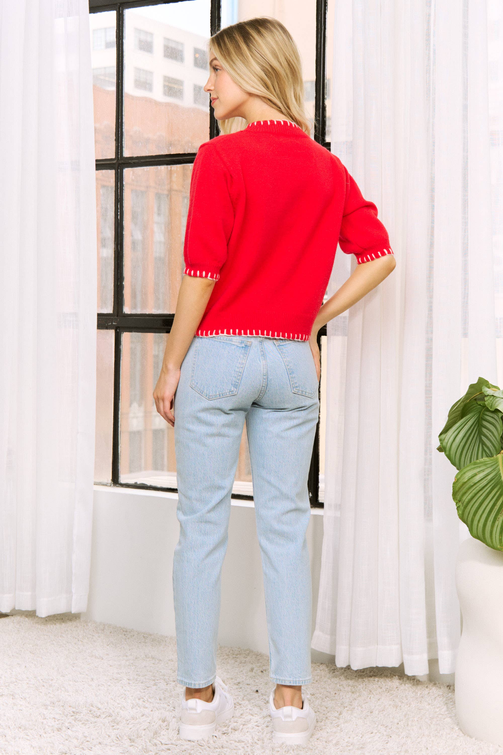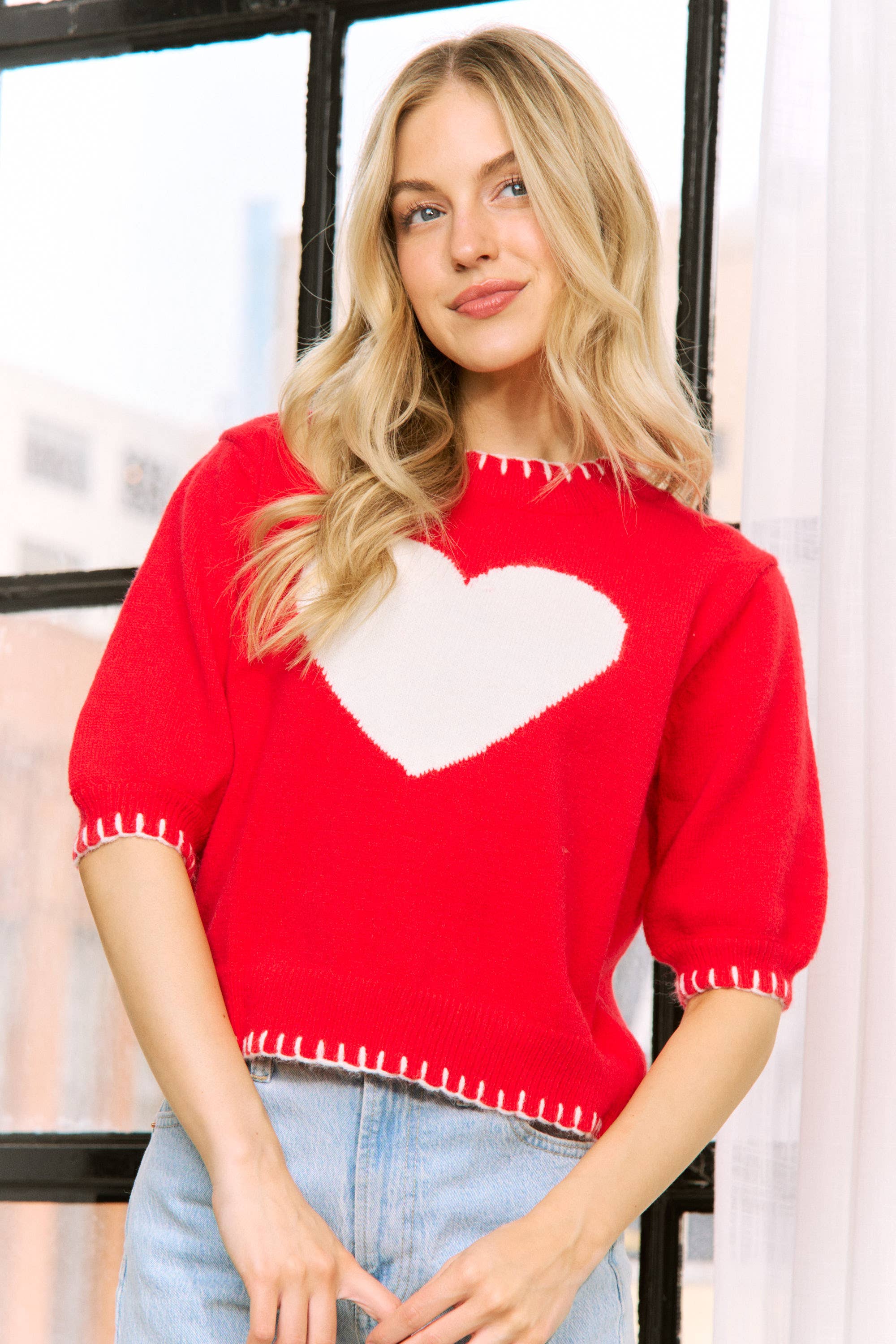 HEART CONTRAST EDGE STITCHES CASUAL PULLOVER SWEATER