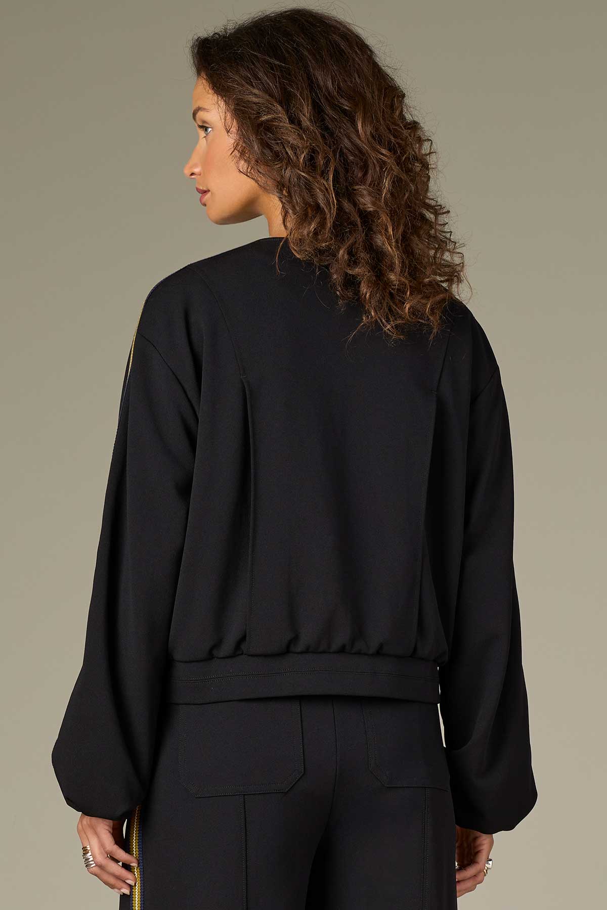 Long Blouson Sleeve Drop Shoulder Jacket W/ Stripe Trim