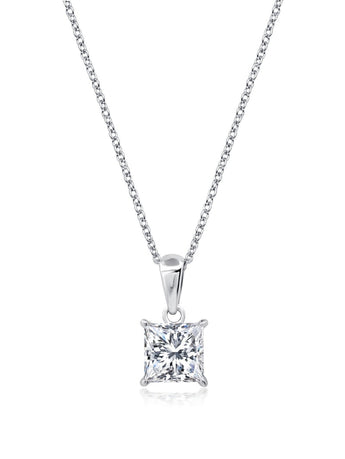 The BRP Radiant Cut Necklace features a striking radiant-cut diamond or gemstone set in a sleek, modern design. The unique cut enhances the stone's brilliance and fire, creating a captivating sparkle. Suspended from a delicate chain, this necklace for women offers a blend of elegance and contemporary sophistication, making it a stunning choice for any special occasion.