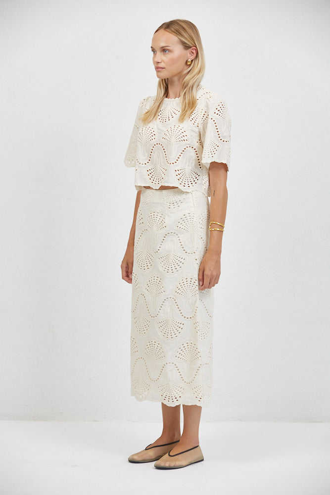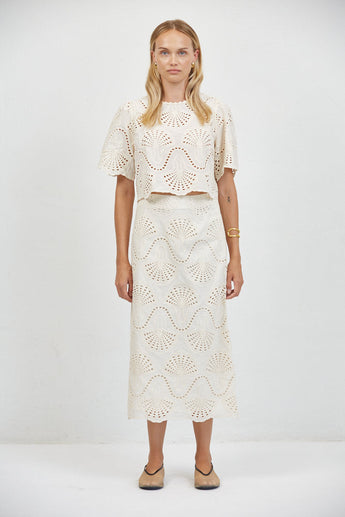 The a.ren Cannes Eyelet Top is a breezy, feminine piece that effortlessly elevates your warm-weather wardrobe. Crafted from a lightweight cotton-linen blend, this women’s eyelet blouse features delicate floral cutouts, a flattering tie-front detail, and scalloped edges. Its relaxed fit and breathable fabric make it perfect for sunny days and casual outings.