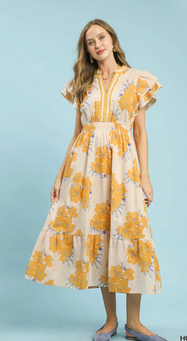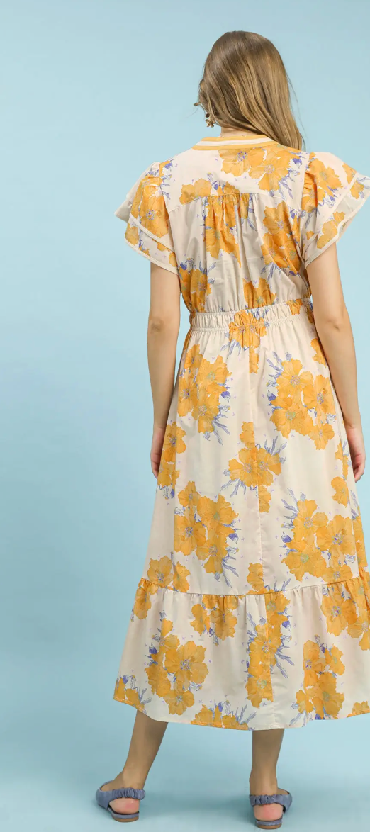 Floral Flutter Sleeve Midi Dress