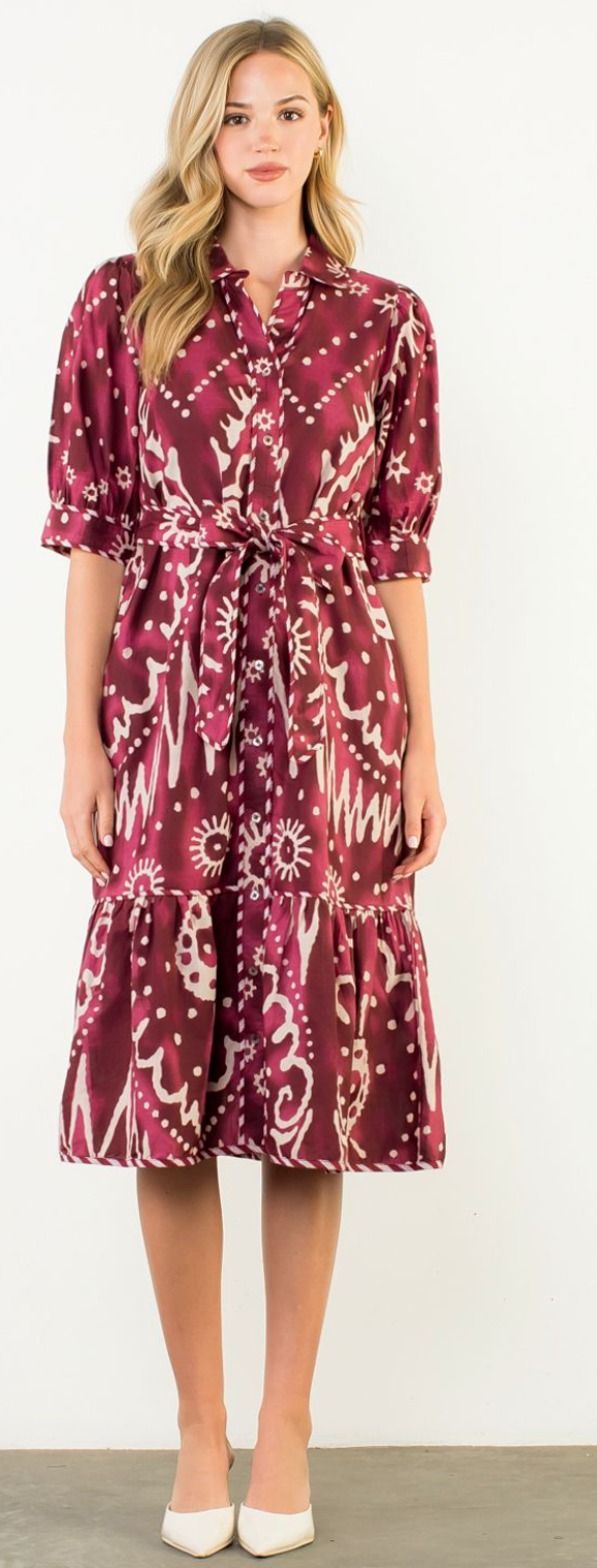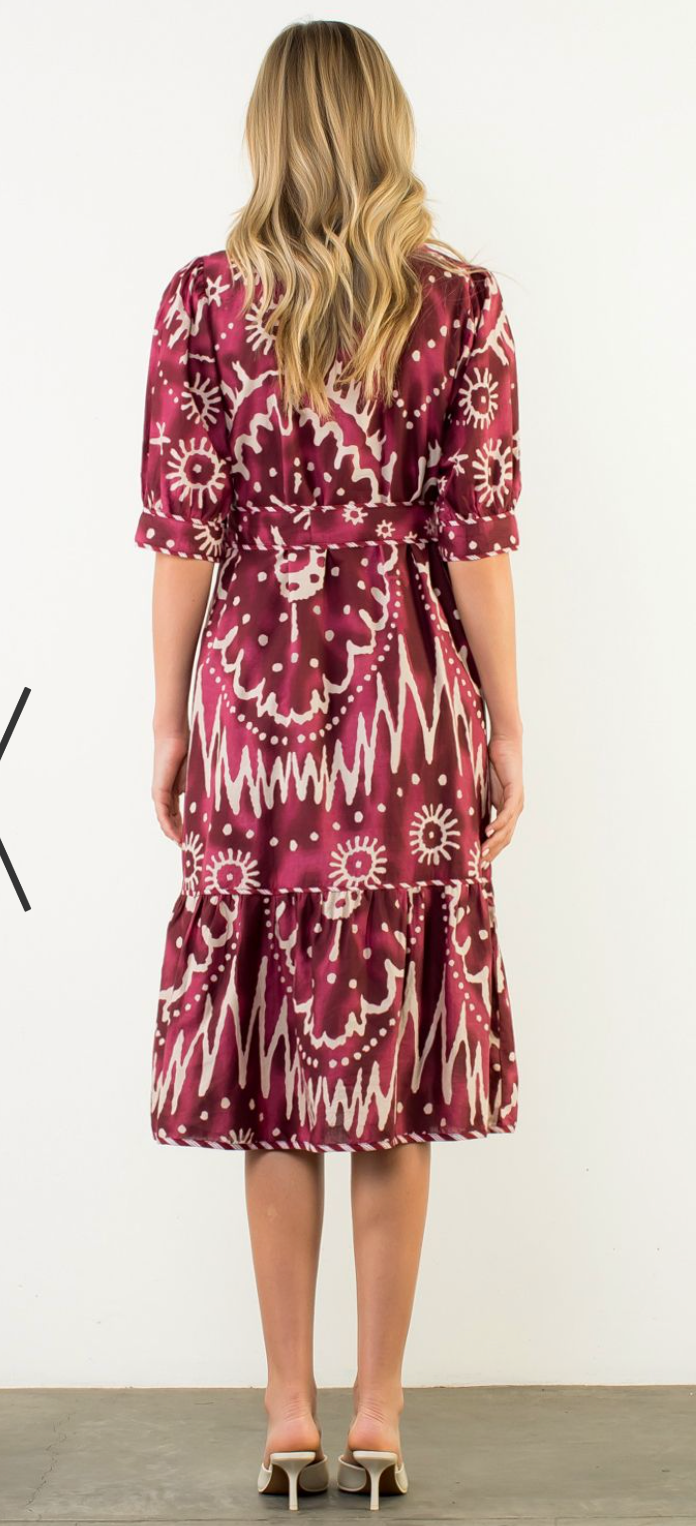 Long Sleeve Print Tiered Dress