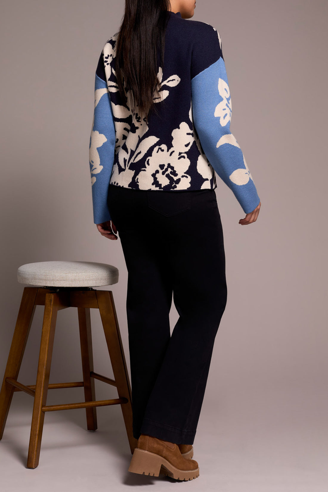 Knit Jacquard Funnel Neck Sweater