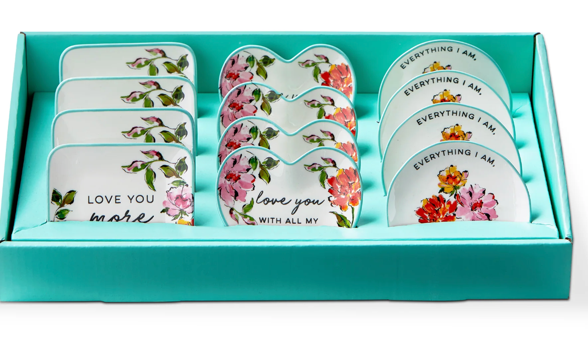 multi-shaped stoneware trinket dish (round, square, and heart) with "With Love" designs. Choose One